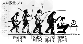 (2)在原始文明时代人口增长模式的特点是____________________;在人类发展的四个阶段中,地球上环境人口容量最大的时代是________。