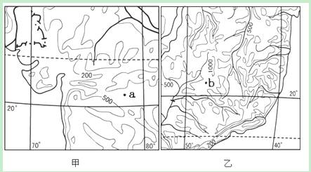 小题2:有关甲、乙两图中a、b两地的叙述,正确的是?