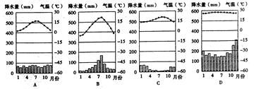 小题1:下列四幅图能反映火灾发生地气候特点的是