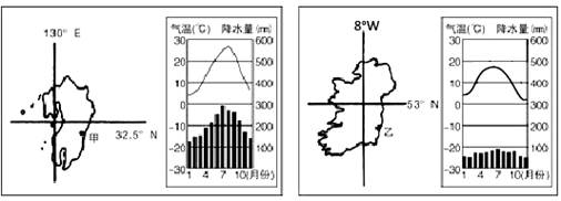 (2)甲、乙两地降水的主要差异是 ,气温的主要差异是 。这种差异形成的原因是 。(4分)