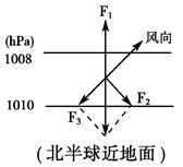 受图中F1水平气压梯度力、F2地转偏向力和F3摩擦力的共同影响