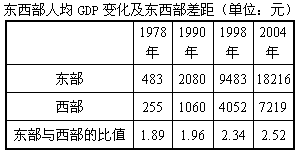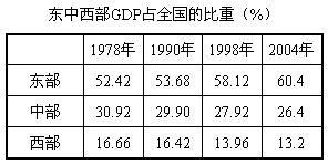 (2)根据以上资料分析,在1978~2004年期间,东部和西部GDP(国内生产总值)占全国比重的变化是