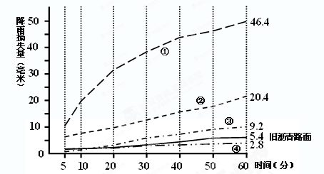 小题1:降雨后被地表吸收及渗透的水量称为降雨损失量,降雨损失量越高的地表越不容易积水。