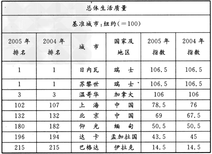 (3)2005年,在所有参与调查的亚洲城市中,上海的得分增长最多。这主要是由于________________________________________________________________________________。