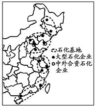1、单选题 下图示意我国东部主要石化基地和企业的分布,读图完成小题。