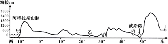 2、单选题  读沿30°N局部地形剖面图,完成下列各题。