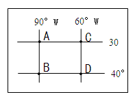 D、点的地方时为8点 D、C点的地方时为10点