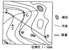 5、单选题 右图为某山地的局部等高线图。等高距为20米,AB为空中索道,回答25—26题。