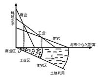 (4)图中A区为城市中心,_______支付地租最高,所以为_______区;B区_______付租能力最高,所以为_______区;C区_______付租能力最高,所以为_______区。