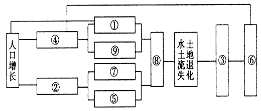 ⑥农业单产下降⑦过度樵采⑧破坏植被⑨过度放牧