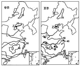 (2)从图中可以看出,甲地在夏季图中出现的天气被称为“?”。形成这种天气的原因是?。