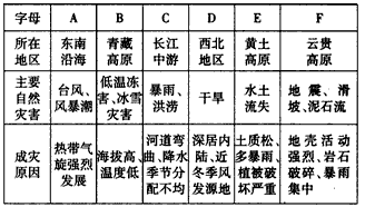 (2)上述字母中,位于我国沿海灾害带的是_______________,位于沿江灾害带的是_____________。