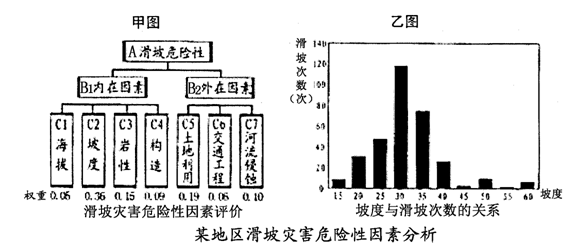 (1)指出该地区滑坡危险性最严重的自然、人类活动致灾因子。(4分)