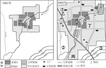 2、单选题 该图是我国东部某城市1981年和2005年比较图。读图回答下面3题。