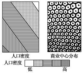 3、单选题 读人口密度和商业服务范围示意图,从图中可以看到( )