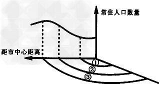4、单选题 下图为“我国某中等城市常住人口数量与距市中心远近的关系图”。读图完成1—2题。