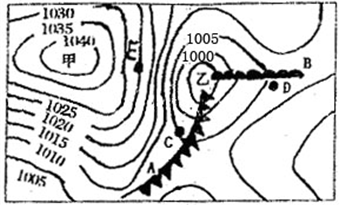 (2)在垂直方向上,甲地盛行下沉气流, 因此天气以 为主。(2分)