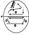 2、单选题 图中各箭头及其代表符号①②③④⑤表示太阳、地面、大气、宇宙空间之间的热力作用,其中包括太阳辐射、地面辐射、大气辐射、大气逆辐射、削弱作用(吸收、反射和散射),回答问题。