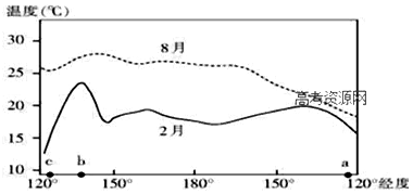 D.因受洋流和纬度因素影响,2、8月水温差异大