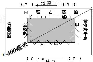 (1)图中阴影区是我国?(填地形区名称),甲山脉是??山。(2分)
