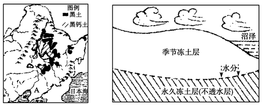(1)分析“北大荒”沼泽地形成的原因。(6分)