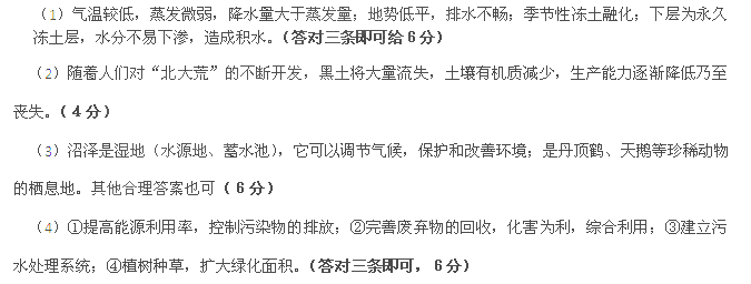 (1)分析“北大荒”沼泽地形成的原因。(6分)
