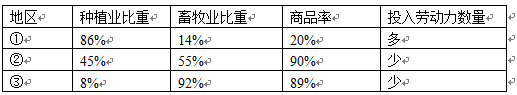 1.①、②、③地区的农业地域类型依次是2.农业地域类型①的形成条件主要有