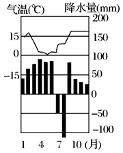 3、单选题 下图是“甲、乙两地各月温度差和降水量差(甲地各月气温减去乙地各月气温,甲地各月降水减去乙地各月降水)示意图”。读图,回答1—3题。