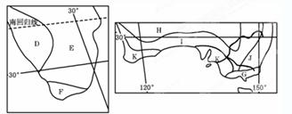 5、综合题 2009年度的达喀尔拉力赛于2009年1月3曰在某大洲的A城发车,于1月18日返回A城,比赛全程9574公里,共分成14个赛段,下图(图甲 )中的箭头为比赛路线,读图回答下列问题:(8分)
