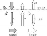 3、单选题  读图,近地面大气中的热量,绝大部分直接来自表示辐射的箭头字母是(? )