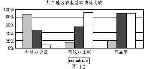2、单选题 图12是几个地区(a、b、c)农业基本情况比较。读图,完成21~22题。