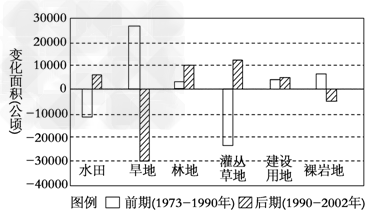 2.以下土地利用类型中,其面积前后期变化能反映流域生态状况由退化趋于好转的是