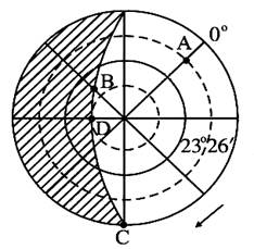 (4)此时A点地方时是_________时,C点的昼长是_________小时,D点的夜长是_________小时,B点的夜长是_________小时。(4分)