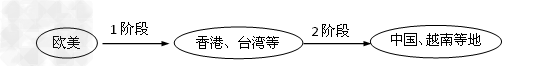 2、单选题 下图表示某产业在世界上的迁移过程,回答1~2题。