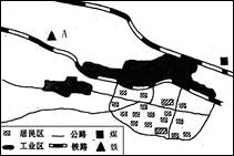 3、单选题  如图所示的污染较严重工业多布局在盛行风的下风向。读图完成问题。
