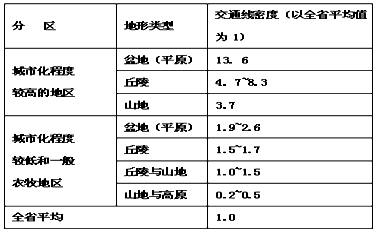 2、单选题 读下面四川省不同地形类型区和交通线密度比较表分析完成1—2题。