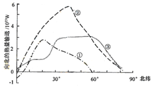 2、单选题 大气环流和大洋环流源源不断地从低纬度向高纬度输送热量。下图表示“北半球向北的热量输送随纬度的变化”。完成下题。