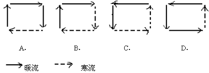 本题考查洋流的分布规律。洋流分布规律:①中低纬度海区形成以副热带高压为中心的大洋环流,北顺南逆;②北半球中高纬度海区形成以副极地低压为中心的逆时针大洋环流;③南纬40°附近海域形成环球性西风漂流。④北印度洋海区形成季风环流,夏顺冬逆。北印度洋夏季洋流为顺时针,为暖流。所以本题选择D选项。