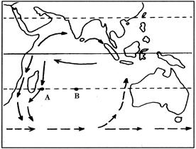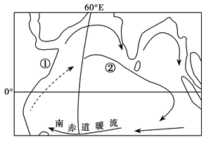 (1)该洋流图是印度洋 月份洋流图,同纬度的A、B两海域,水温较高的是 ? ;影响的主要因素是附近有 ? 经过。