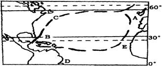 小题2:如果此海轮从B返回到A处时,仍是顺风顺水,则所利用的盛行风为____________,所利用的洋流是______?____和_____________。