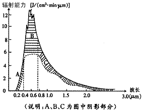 4、单选题 如图是近地面(虚线)和大气上界(实线)太阳辐射波长分布示意图。读图回答下面1—2题。