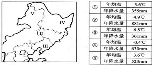 1、单选题  读“东北区域略图”及五地相关气候资料表,完成问题。
