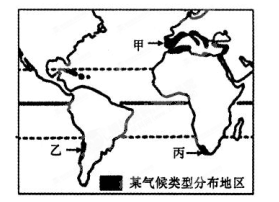 1.该气候区代表性农作物具有的特点是2.与甲地区相比,造成乙地区该种气候类型分布较狭窄的最主要因素是