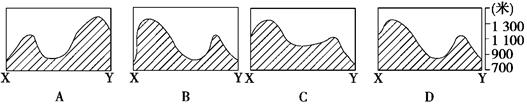 4、单选题 该图为“北纬48°与东经122°交汇附近的等高线图”,下列四幅地形剖面图中与X至Y剖面相吻合的是( )