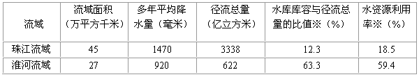 5、综合题 下表为珠江、淮河流域有关数据对比表。读表并回答问题。