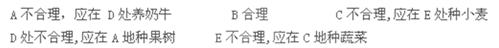 下面城镇周围农业区位安排图,请你根据影响农业区位选择的自然条件因素和社会经济因素,判断下列各农业区位安排是否合理?如不合理,应怎样调整?(每空2分,共10分)