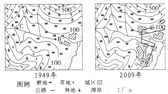 4、单选题 下图是我国北纬30?附近1949年与2010年的土地利用变化示意图,读图完成下列各题。