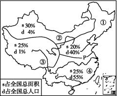 小题1:图中①②③④是我国四个地理区域,由各区的面积和人口比,可知人口密度最大的区域是