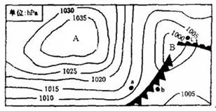 5、单选题 图中a为等温线,b为锋线且向偏北方向移动,虚线范围内为雨区。读图回答下列小题。