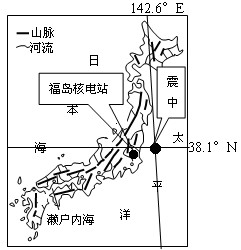 3、单选题 北京时间2011年3月11日13:46在日本东海岸附近海域发生9 级地震。福岛核电站严重受损并发生放射性核物质泄漏。读图完成1~2题。